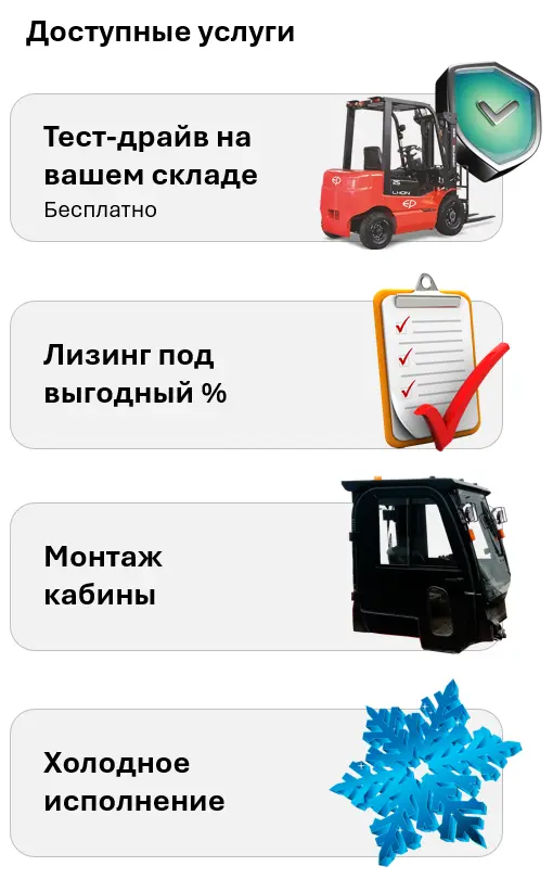 На всю складскую технику бренда EP-Equipment действует гарантия на заводской брак 2 года или 2000 моточасов (смотря что наступит раньше), а на АКБ — до 5 лет. Вы можете расширить свою гарантию с двух до четырёх лет, если при покупке техники заключите с нами дополнительный договор на сервисное обслуживание техники.